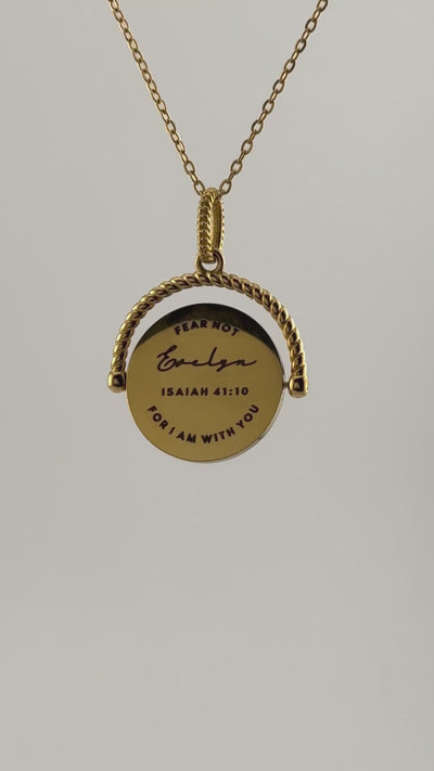 Back Engraving: Your chosen Bible scripture, revealed as the pendant gently rotates.